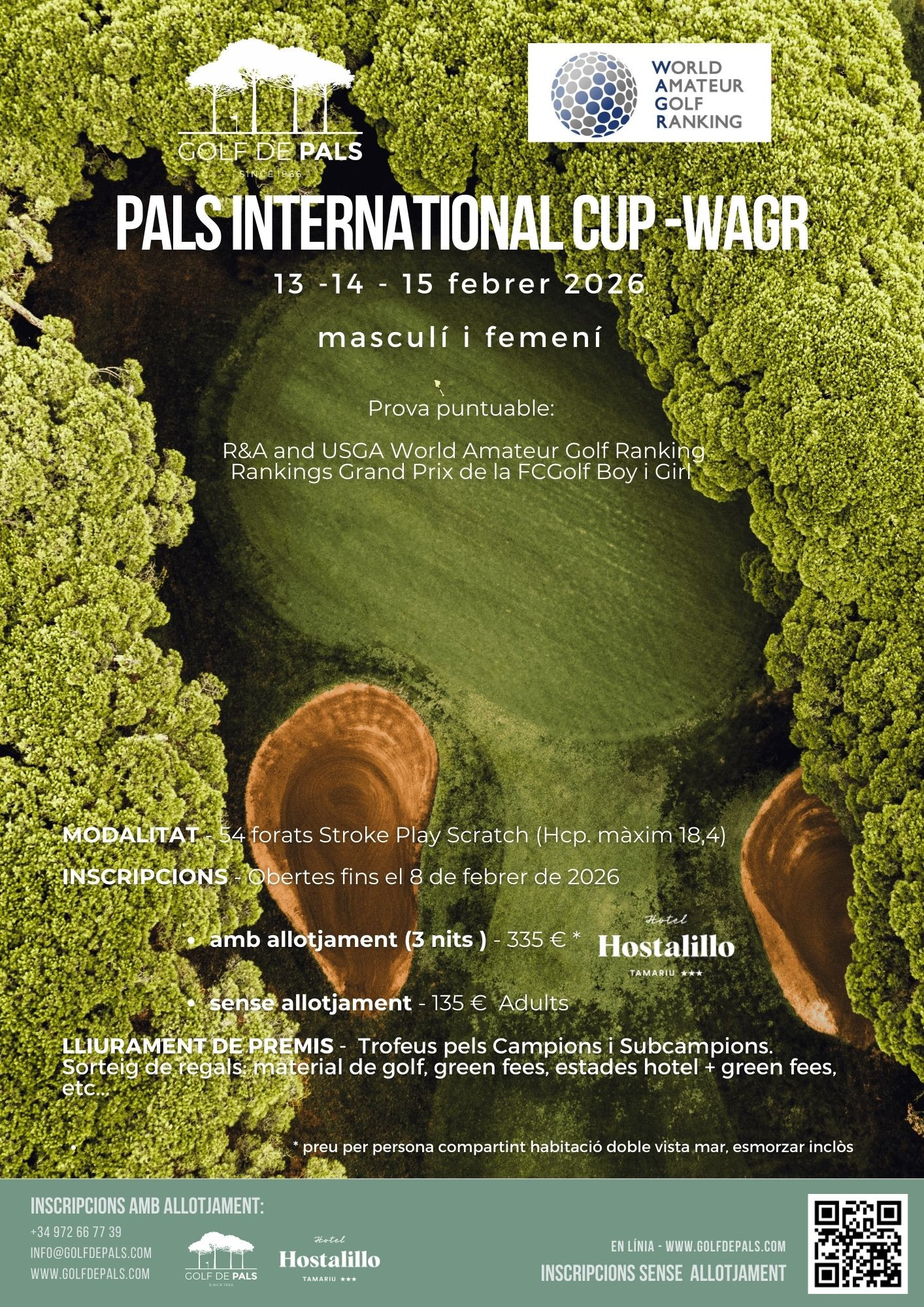 Per als que vulguin afegir l'allotjament per a aquestes tres jornades de competició, cal trucar al +34.972.667.739 o bé per correu electrònic a info@golfdepals.com. Consulteu els preus al reglament del torneig.